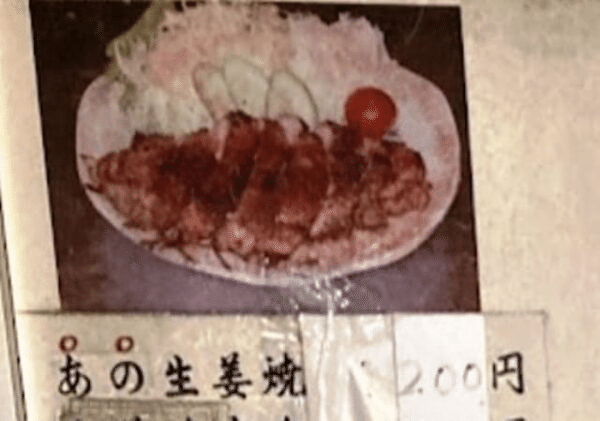 帰りに入口の掲示物を見返すと写真付きで「あの生姜焼1,200円」って、表記がありました。ネットの事前情報があれば別ですが、このメニュー写真だけでは、なかなか注文する気にはなりませんでした、残念、食べてみたかった。