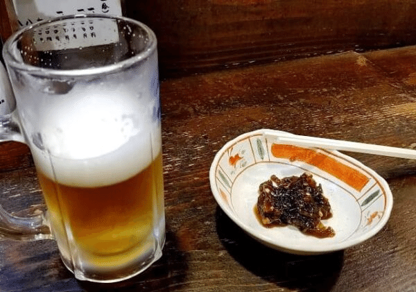 とりあえず、店を開けてくれていることに感謝して入店しました。今日は無事に草津温泉まで到着できたことを祝うべく、生ビールでのどを潤して、つまみにふきみそという地元の珍味と具だくさんなスペシャルそばを注文。