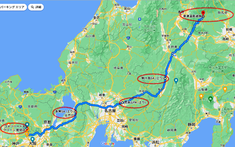 大阪の自宅から群馬の草津温泉まで移動