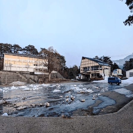 車中泊最有力候補の「道の駅磐梯」でしたが、写真の通り、車がほとんど泊まっておらず残雪もある状態に恐れをなして、次の候補の「道の駅裏磐梯」に向かいました。