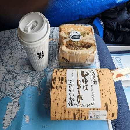 日光名物「ゆばむすび」とサンドウィッチの炭水化物W摂取でパワーアップをはかりました。道の駅日光はデリカ系の商品が充実していて、女子受けしそうな品揃えが抜群でした。