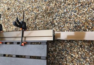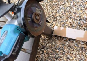 木材は電動マルノコ(マキタ充電式マルノコ18v刃径165mm)、波板コーナー(AlincoBA174B波板用コーナー見切片)はスチール製なので、グラインダー(マキタディスクグラインダ18V100mmスライドスイッチ型)を使用してカットしました。波板コーナーは波板1枚で1,200㎜幅をとるために、通常の使用方法とは逆向けに使用しました。