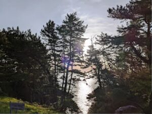 今日でお別れする神割崎キャンプ場の名所、神割崎に歩いていき、朝陽が昇るところを写真と記憶に留めて出発しました。隼の積み込みも慣れてきて、難なく済ませることができました。あとから思うとこのあたりの気持ちの緩みが後の危機に繋がっていたように思います。その話は次回にするとして、今日はハイエースで移動しました。