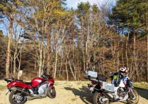 ふもとの道の駅に着くと出会いがありました。Nさんという方で、車とに二輪車を製造しているメーカー(1社?)を早期退職されアフリカツイン(大型アドベンチャー)で全国を旅してまわられているということで、旅話で盛り上がりました。さらにこのNさん、まだ宿泊先を決めていないということで、ぼくが泊まる予定のキャンプ場に来ることになり、一緒にバーベキューをしました。Nさんお勧めの「行者にんにく」でお浸しまで作ってもらいとても楽しく、グルメな宴になりました。