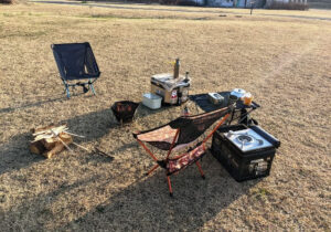 ここはふわふわの芝生だったので、隼を降ろすのにも恐怖感はありませんでした。さっくり降ろしてふもとの道の駅まで、買い出しに向かいました。このキャンプ場は宿泊棟も併設していて、温泉施設があるので、バーベキューをした後に入浴することにしました。