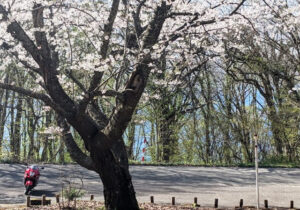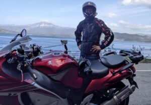 それから田沢湖に向かいました。ハイエースで先ほど通った道ですが、とても綺麗だったので、隼でもう一度走ってみたくなりました。時間も早かったので田沢湖を1周してみました。道が空いていて、特に湖の畔は桜が満開で最高のシーズンだったように思います。あまりにも綺麗だったので、何度も隼を停車して写真を撮りました。