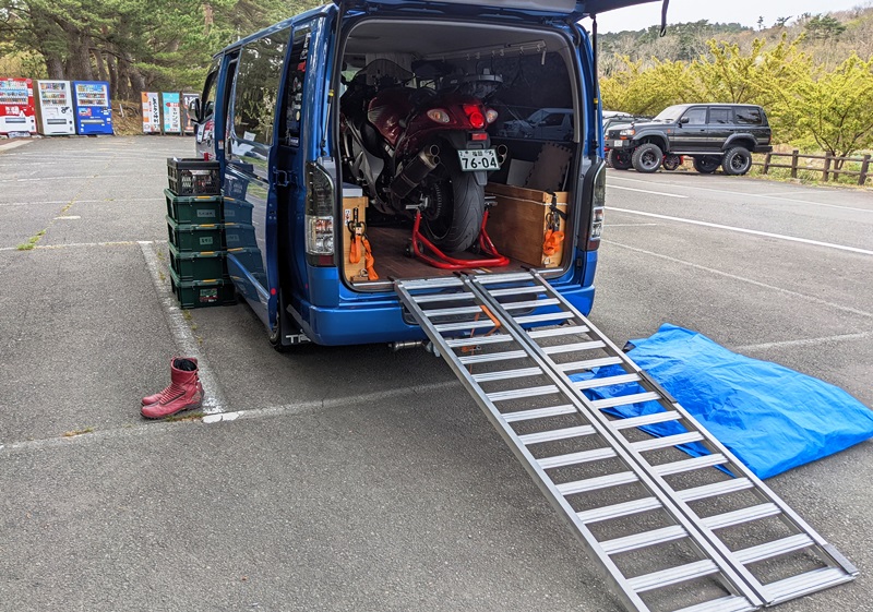 今日はハイエースの基本的な装備をご紹介します。車中泊に出る時はこの基本装備に加えて、積載するバイクや同乗者の人数に合わせてオプションの装備を追加しています。オプション部分は次回以降のブログでご紹介させて頂きます。