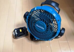 扇風機:マキタ充電式ファンCF102D6,930円(税込)小型ではあるものの、車内では充分な風量があります。マキタの18Vバッテリーにも対応しているので、車載バッテリーが無くなっても使用できます。難点は若干、音がうるさいことです。タイマー付きですが、寝る時は切っています。騒音が気にならない方にはよい扇風機だと思います。
