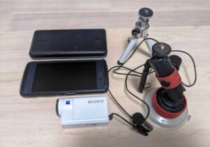 アクションカメラはハイエースの運転席側の手すりに受け具をつけて固定しています。目線に近く手で左右の角度を変えることができるので、いい感じです。またバイクを降ろしてツーリングする場合にもアクションカメラを積み替えて使っています。その時は写真のタンク用フォルダに固定しています。また、バッテリーの持ちが悪いので、充電バッテリーを直繋ぎして使用しています。これだと終日撮影してもバッテリー切れはありません。あとモニターとして昔の携帯を使っています。徒歩でどこかに行くときは写真にある小型の三脚を手にもってアクションカメラで撮影しています。このカメラで撮ったものを動画だけでなく、スクリーンショットで写真としても活用しています。あとマイクには風切り音を防ぐためにお手製でスポンジをつけています。これで全く風切り音はしなくなりました。