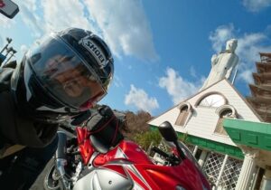 購入後、翌日には淡路島に1泊2日のツーリング旅に行きました。明石海峡大橋が風のため2輪通行止めになるかどうかといった微妙な風速の日で、隼初乗車に近いぼくにはいきなりの苦行となりました。往路では、右からの風に煽られて、地面が網目の鉄格子状になっている路肩部分まで飛ばされ生きた心地がしませんでした。