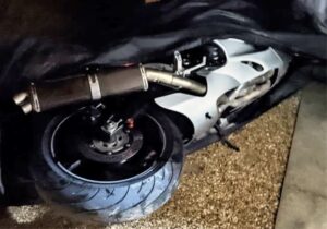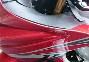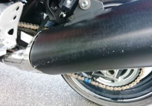 今回の立ちごけによる痛手はカウル上部の擦り傷、ステップのバンクセンサー骨折、マフラーの擦り傷、あとサイドパニアケースとエンジンガードにも傷がつきましたが、これが緩衝材になり隼が走行不能になるような大けがは免れました。