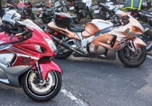 その後は、子供が生まれたり、仕事が忙しかったりしたためバイクに対する気持ちは薄れる一方でした。しかしある時、GSX1300R隼の初号機(写真のシャンパンゴールドのバイク)を街で見かけて衝撃を受け、いつかはあれに乗りたいと突然、バイク熱が再現しました。そして、3人の子供が大学を卒業して社会人として自立したのを機に、教習所で大型免許を取得(この際は1発合格)しました。
