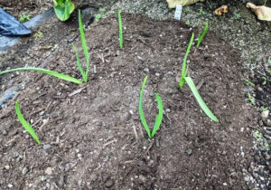 発芽が遅れていたニンニクでしたが、前回のブログでお伝えした通り、無事に芽を出しましたので、もともと予定していたイチゴをその畝の真ん中に植え付けることにしました。ニンニクは畝の両端に2列のちどり状に植え付けたので、中央部分の隙間に株間40㎝で植えようと思います。
