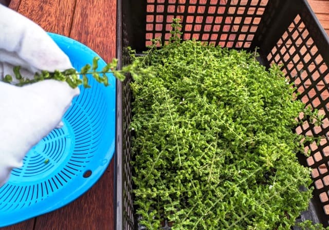 しその挿し木づくりは、枝を30㎝ほどカットして下の方の脇目と葉をカットして、水を入れたペットボトルに入れて日陰においておきました。2週間ほど経って根っこが5㎝ほどに育ったところで畑に戻しました。その挿し木したしそも親の5分目ぐらいの高さに成長し、多くの葉をつけ、美味しくたべることができました。親のものと成長段階にずれが生じたので、親のしその葉が最盛期を過ぎて硬くなり始めてからは調理用に回して、同時期に挿し木の方からは若い(柔らかい)葉が出てきたので、刺身やサラダなど生食用に使うことで、どちらも活用できました。