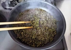 後半になると同時期に花が咲いて実をつけだしたので、両方同時に獲ることができました。種がどれぐらい地面に落ちたかは分かりませんが、来年から自生してくれることを目指して、他の場所で培養しておいた土を足して軽く耕しておきました。この方法で無限ループできると良いのですが、どうなるでことでしょう。では、本題のしその実の佃煮づくりに入りたいと思います。