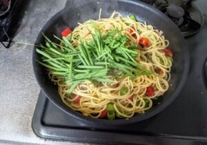 4.パスタを入れて、⑦で味を調える(味見はここでして仕上げてください)