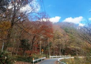 来た道を戻るか、大河内口八田線を経由して瑠璃渓に向かいます。戻るコースでも大河内口八田線を走っても25分程度で瑠璃渓につきます。瑠璃渓に向かう道はどこから登っても道幅が狭くワインディングもタイトなので、対向車に気を付けてキープレフトで進みます。