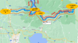 来た道を戻るか、大河内口八田線を経由して瑠璃渓に向かいます。戻るコースでも大河内口八田線を走っても25分程度で瑠璃渓につきます。瑠璃渓に向かう道はどこから登っても道幅が狭くワインディングもタイトなので、対向車に気を付けてキープレフトで進みます。