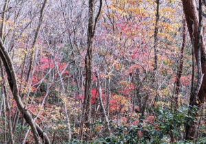 京都では高原リゾートして有名なるり渓温泉の駐車場にバイクを停めて、そこから河原に降りて渓谷の紅葉を散策することができます。11月になるととてもキレイなのでぜひ歩いてみてください。昨年の12月前半に行った時の写真を添付しておきます。この時はすでに紅葉というよりは落葉でしたが、地面が真っ赤に染まって、これはこれで素晴らしい景色でした。