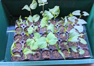 園芸店で種を物色してちょうど今の時季に蒔くと良い種を選んで、あとポットで育てるためのプレートも購入しました。土は種まき培養土なるものが良いときいたので、それも一緒に購入しました。肥料を撒きたての畑の土ではうまく育たないと、こちらもYouTube先生に教わりました。