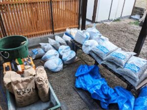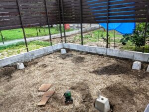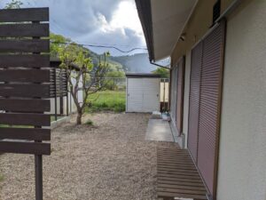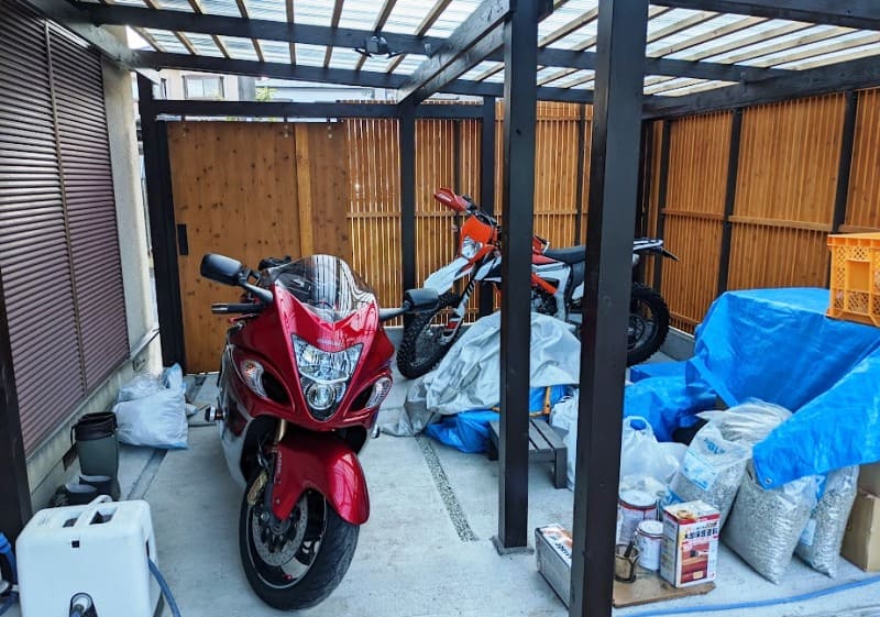 この場所(上写真)にバイクガレージをつくります。手順としては①入口にコンクリートを流し込んでsスロープを作って段差をなくす②木造の骨組みを作りポリカーボネートで雨除けする③バイクが出入りできる扉をつける④側面の柵を張り替えて外部からの視線を遮る⑤床に排水溝を設けてコンクリートを打設する、というのが今回のDIYです。僕にとっては難易度マックスですが、YouTube先生と相談しながら安全性重視で作業に取り掛かります。