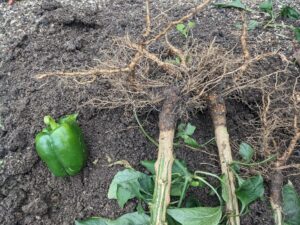 パプリカは11月初旬までとても甘くて美味しい実が収穫できていたのですが、後半になり、実が大きくならなくなっていたので、最後の1個を収穫して抜き取りました。根はしっかりしていて元気だったのですが4度を下回る寒さには耐えきれなかったようです。