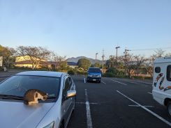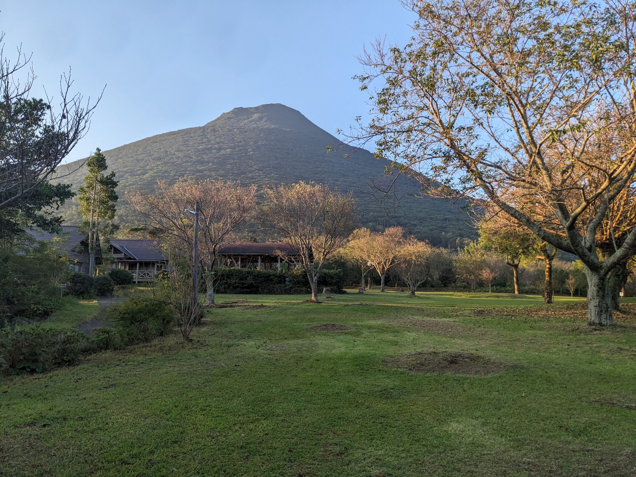 昨夜(2024年11月13日)は九重山から移動して道の駅「いぶすき」で車中泊させて頂き6時過ぎに開聞岳の2合目登山口がある「かいもん山麓公園&登山者臨時駐車場(無料)」に向かいました。25分ほどで到着すると直ぐに猫ちゃんが挨拶に来てくれました。何か食べ物をあげたくなる衝動を抑えるのが大変なくらい、可愛い素振りで近寄ってきてくれたので癒されました。そんなこんなで身支度をして7時20分から登山を開始しました。今日も快晴で無風、気温20度前後で最高の登山日和です。
