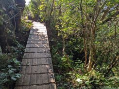開聞岳の標高は924mと低いものの、2合目(標高200m)からスタートするので、標高差という面では昨日登った九重山よりも大きいので油断せず、水分2.5ℓと非常食、ヘッデン、応急処置セット、雨具等を持って登りました。案の定、自分の中では低山アルアルの登り一辺倒の登山道が続き、マングローブのような樹林帯が蒸し暑く、体力的には負荷のかかる登山道でした。