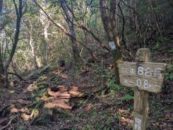 ということで5合目からは眺望を楽しみながら登れるのかと思いきや、またまた樹林帯に入り、時折視界が開ける程度で、樹林帯登り一辺倒の苦行が続きました。それでも、このパターンは所要時間は短くて済むので9時半には頂上に辿り着きました。登り始めたのが7時20分だったので2時間10分で登りきることが出来ました。頂上でランチを食べようと思っていたのですが、朝食を食べてからまだ3時間ほどしか経っていなかったので、コーヒーとおやつだけで済ませて、下山してから食べることにして、頂上を後にしました。
