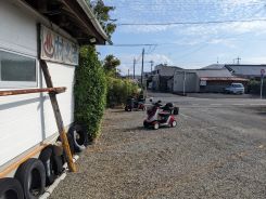 駐車場に戻ると電動カートが2台停まっていて、なんとも平和な気分になることができました。料金も350円とリーズナブルで源泉かけ流しの温泉も最高の泉質(アルカリ性明ばん泉)なので、お勧めです。