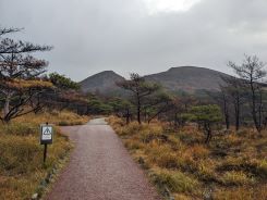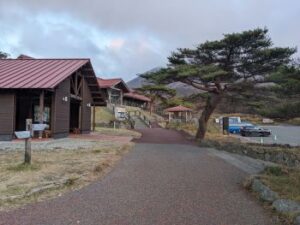 昨日(2024年11月14日)、開聞岳から下山後、韓国岳登山口がある「えびの高原第1駐車場」に移動して、そこで車中泊しました。夕食はチキン南蛮の元祖「直ちゃん」でチキン南蛮定食(1,000円)を食べてきたので、ハイエースの食料カゴに入っているものを肴にハイボールを飲んで就寝しました。えびの高原駐車場はビジターセンターやエコミュージアムセンター、売店等がありますが、夕刻にはどこも閉まっているので、自動販売機で調達できるドリンク以外は麓で購入しておくことをお勧めします。朝は6時過ぎに起床して朝食とり、身支度を整えて7時25分から登山を開始しました。