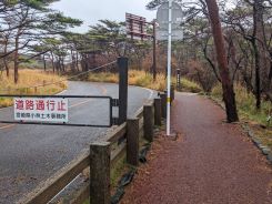 通常のルートと変わらない時間で、県道11号に突き当たりそこで道路に上がりました。私の前にも誤ったルートを通っていたグループがおられたので、見落としがちな分岐があるようです。この大波池西回りルートは、往路とは異なり合目の表示や赤リボンが少なく、踏み跡が二股になっているところも多いので、注意して進む必要があるようです。県道11号を2㎞ほど歩いて駐車場についたのは、10時55分でした。往復の所要時間は3時間半でした。