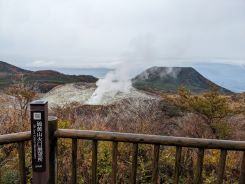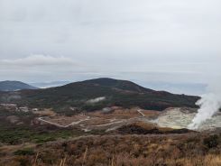 序盤から視界は良好で、そこかしこから火山活動による湯気が立ち上り、硫黄臭もするので非日常感が満載です。登山をしていても普段中々見れない景色が広がっているので歩き飽きることがありません。