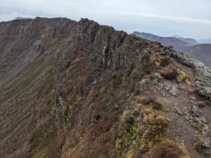 下山は大波池西回りルートを通る周回コースを選択しました。途中で、大波池から離れてえびの高原駐車場に向かう必要があったところを沢をそのまま下ってしまい、期せずしてバリ下山になりました。