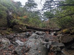 赤リボンを見失って、直ぐに間違いに気づいたのですが、GPSと方位磁石、それにダウンロードした地図があったので自分の位置と登山道、あと車道も近くにあることが確認できたので、そのまま沢を下りました。