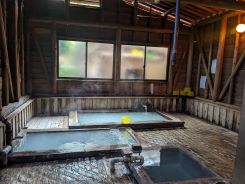 下山後、霧島温泉の「湯之谷山荘」に立ち寄りました。秘湯感満載で「炭酸泉」「混合泉」「硫黄泉」の湯船がそれぞれあり、温度帯も炭酸泉が低温、混合泉が中温、硫黄泉が高温と分かれていてこれを順繰りに入るとサウナと水風呂を繰り返すときに感じる「整う」という心境になりました。その上、肌も筋肉疲労も整うような気がして、究極の「整う」感を味わうことが出来ました。体も心もリフレッシュして、九州遠征最終目的地の「祖母山」登山口に向かいました。