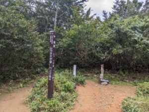 そんな中でも早朝の4時を過ぎると少しずつ車がやってきて、登山開始の6時45分には5台程度車が停まっていました。この場所からの登山ルートは千間平コース(緩やか)と風穴コース(急峻)の2コースがあり、どちらから登るにしても帰りは逆のコースから周回するパターンが多いようです。私は千間平コースから登ることにしました。体が山歩きに慣れる前にカウンターパンチを食らうことを避けました。
