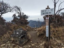 山頂に着いたのは8時50分で所要時間2時間5分の登りでした。山頂でコーヒーを飲んであまり間をとらずに下山を始めました。往復が異なるコースだったので下る間も写真を撮りながらゆっくり歩きました。4日間連続のピストン登山の最後を締めくくる下山なので、ケガをしないよう慎重に進みました。それでも11時に駐車場に下山することができ、九州遠征登山を無事に終えました。