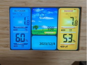 外気温0.7℃、室内10.1℃ 内外温度差9.4℃