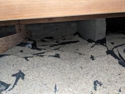 湿度対策では地面がむき出しだったので、そこに防湿シートを張り、その上に「床下カラッと」という乾燥剤的な小石を敷きつめました。