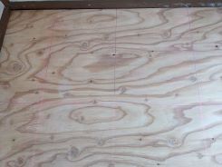 床は洗面スペースとトイレを除いて全て床を剥がして、断熱材(スタイロフォーム)と合板、そして仕上げ材として、ヒノキの羽目板を張りました。
