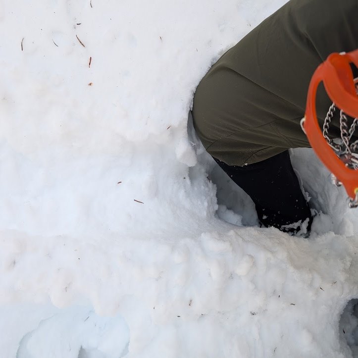 雪の深さは源流地点までが40センチ、急登ゾーンからは膝から股関節位で、深いところでは60センチの新雪が積もっていた。