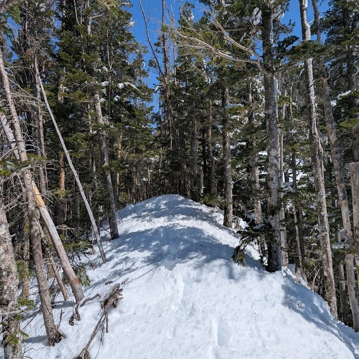 3月22日に登った甲武信ヶ岳では2日前に降った大雪が堆積して、行程の3/4地点にある千曲川源流を越えた急登ゾーンからトレースが全く無かった。