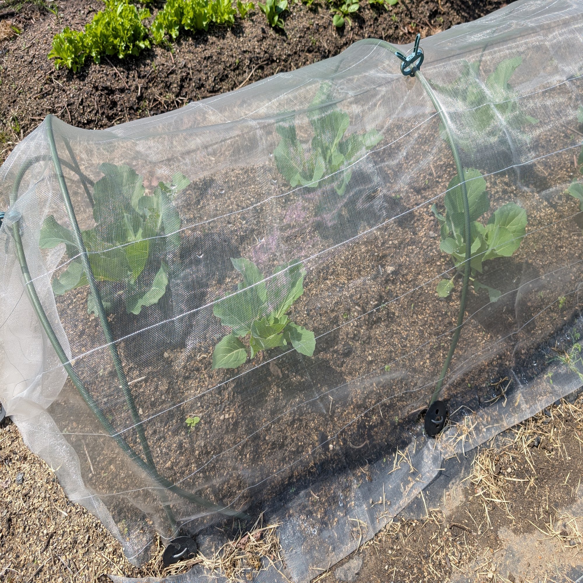 昨日は害虫・風対策を一気に仕上げて、あとは水やりと、雑草対策、追肥程度で収穫までいけそうです。