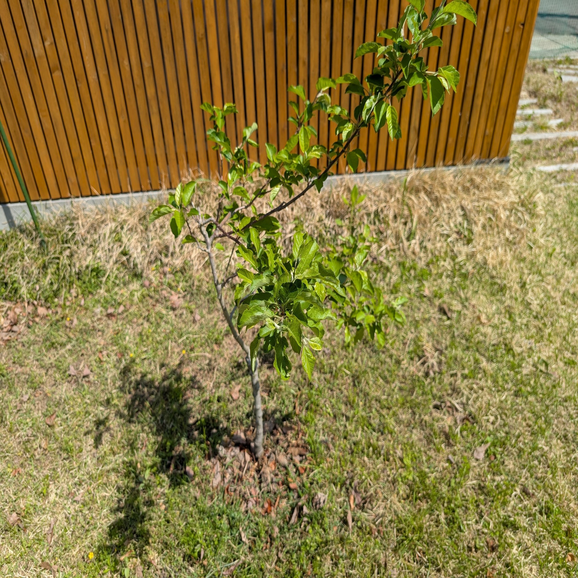 今春、苗木を購入して芝生ゾーンに植え付けた紅葉。少し元気がなく気がかりですが、何とか秋には初紅葉を楽しませて欲しいところです。