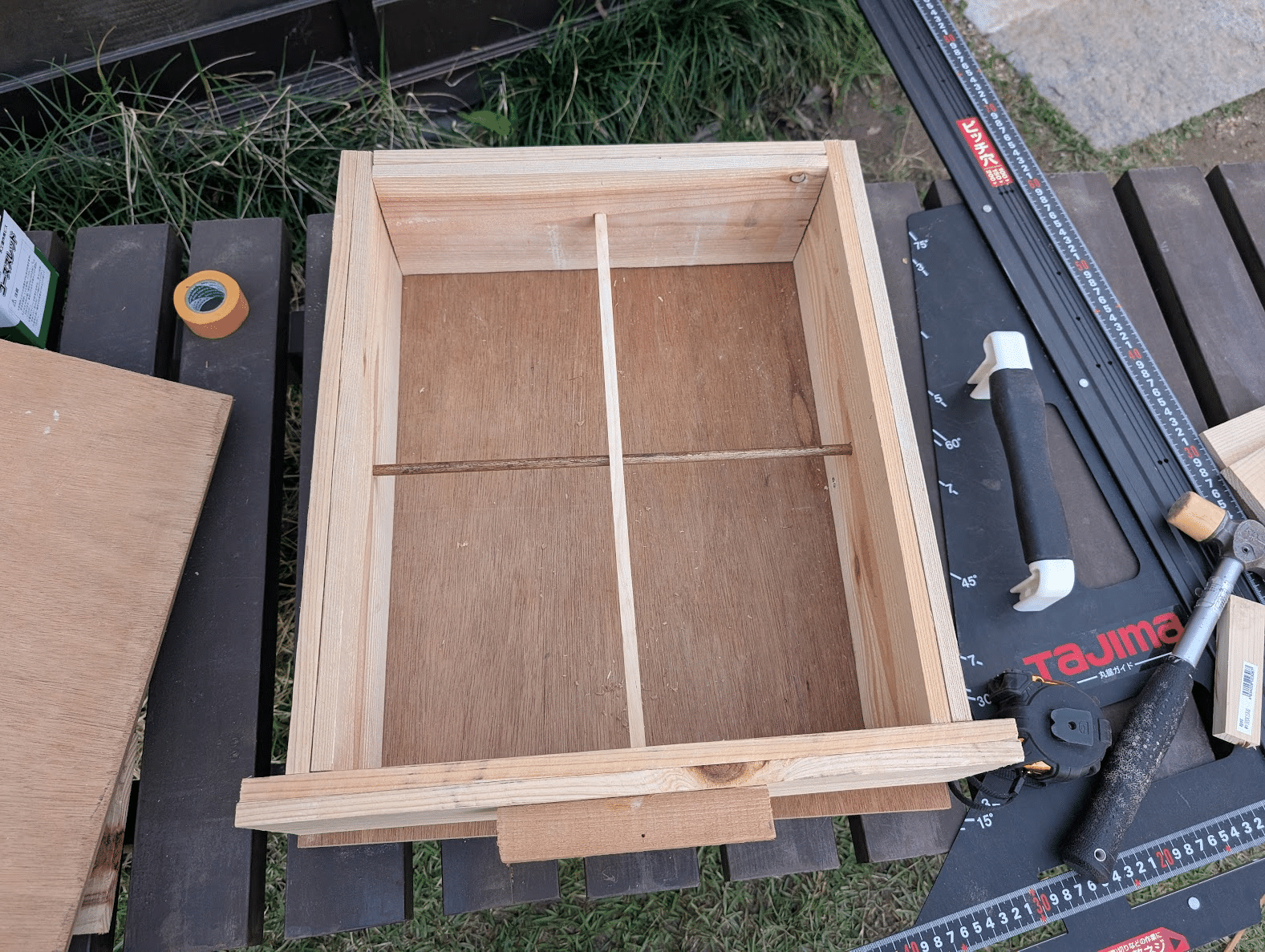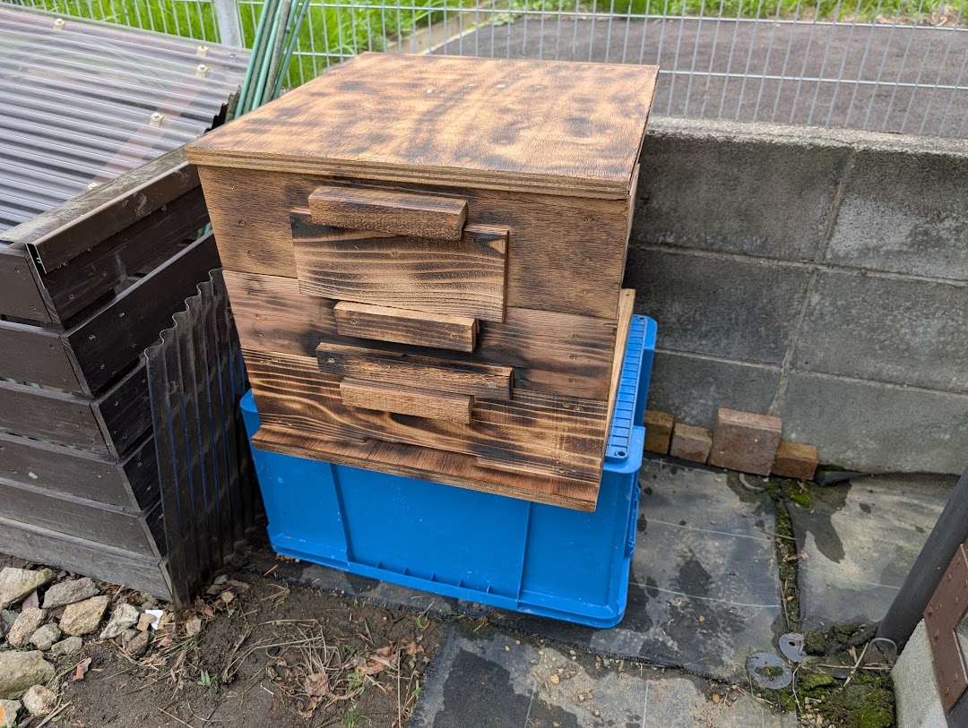 日本ミツバチが集まってくれるのか分からないので、倉庫に眠っていたありあわせの木材でつくることにしました。檜よりも杉の方が良いというアドバイスを頂いたので、杉の端材から優先して使用しました。