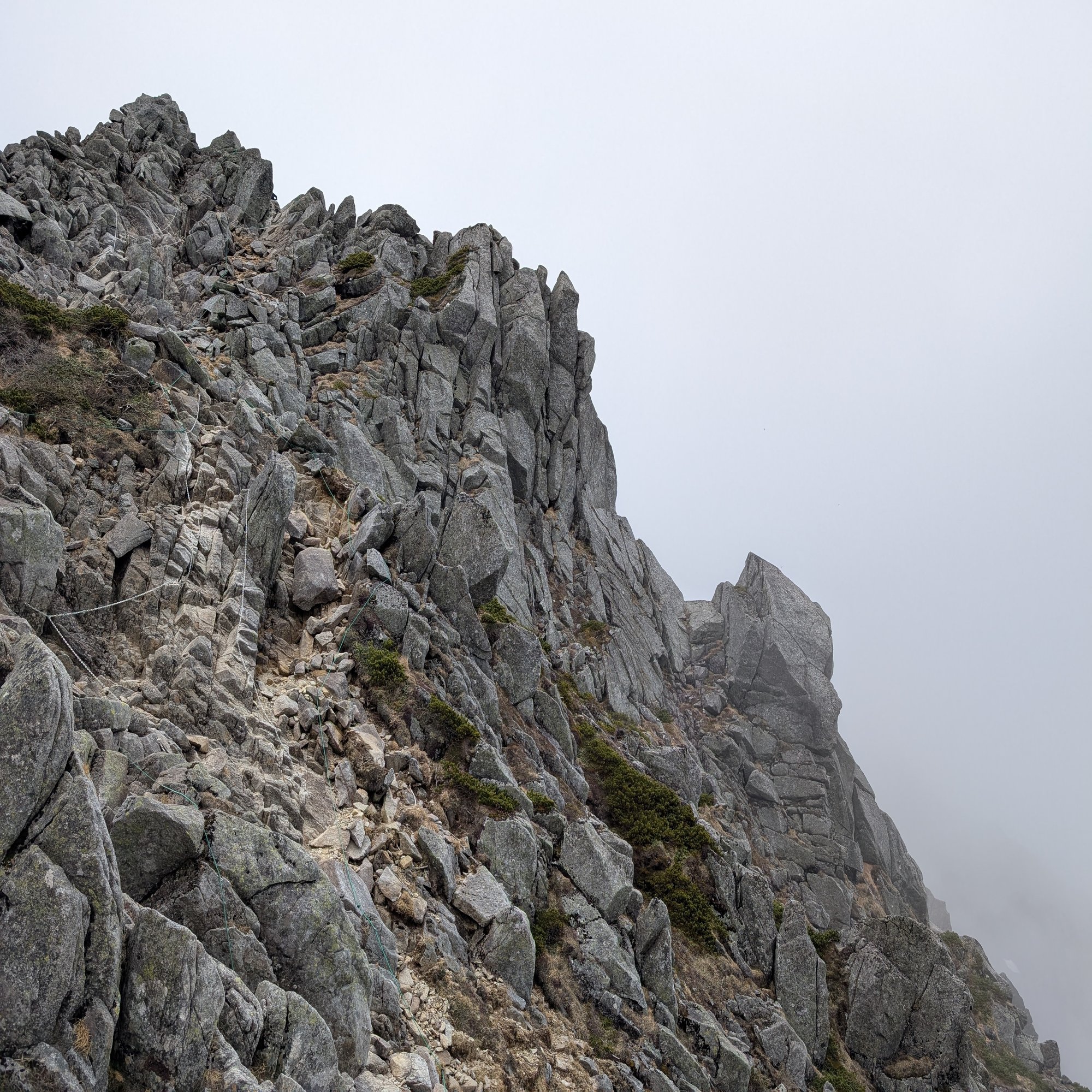 登りは、先行に無装備の外国人カップルがいて、何度も足を取られてずり落ちてきました。滑落とまでは言えない軽微なものですが、後続者としては、気になって仕方ありません。