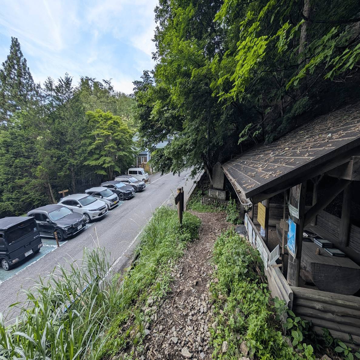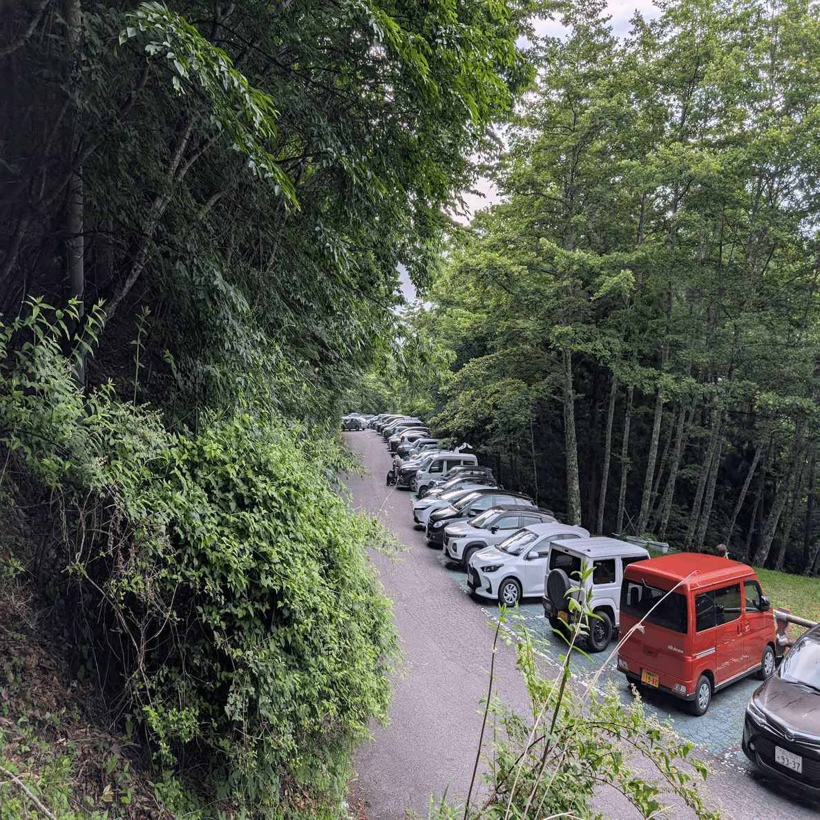 6月27日の金曜日に愛知県で仕事を終えて山梨県の夜叉神峠登山口駐車場に移動しました。22時過ぎに到着したのですが、金曜日の夜ということもあり、20%程度はすでに駐車場が埋まっていました。翌朝6時の段階では、上の方の空きは2~3台程度でした。