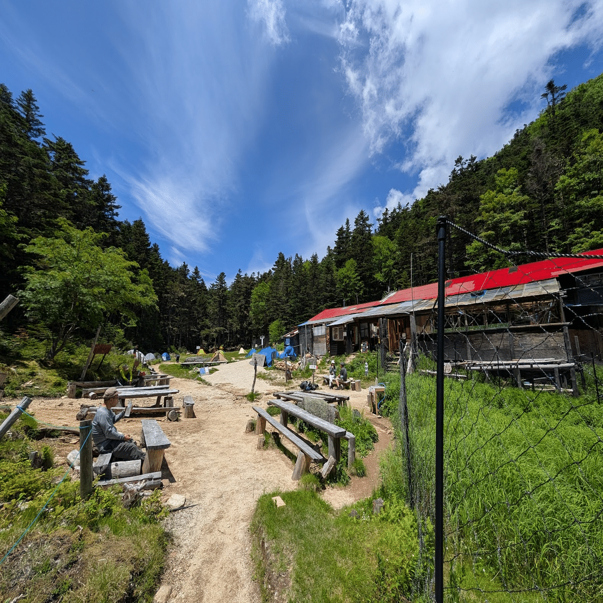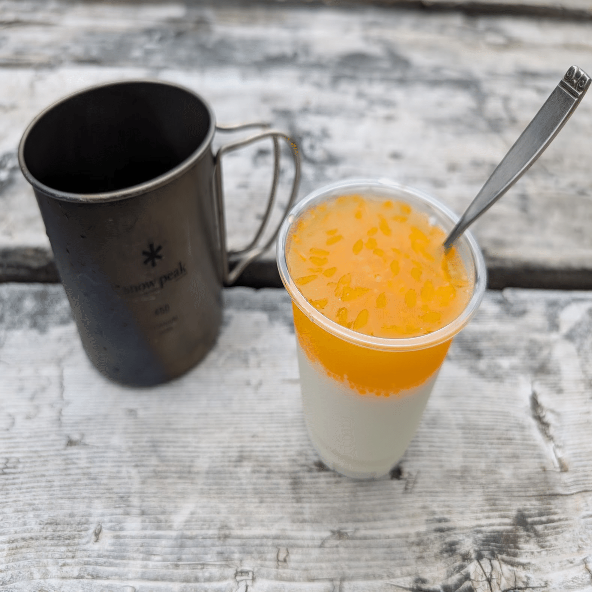 地蔵ヶ岳から南御室小屋までは、下りが多めなので約2時間で戻ることができました。南御室小屋でテントと荷物を回収し、コーヒー&南御室小屋名物?杏仁豆腐を頂きました。