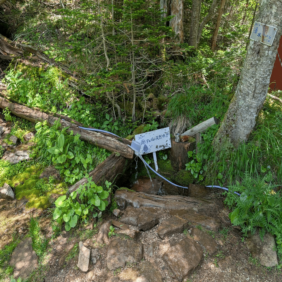 ここから、5分もないところに南御室小屋がありました。ついて直ぐに、正真正銘の「南アルプスの天然水」を頂きました。氷温で、キリリと美味かったです。